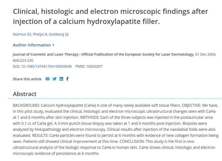 Biocompatibilidad: El CaHA es un material biocompatible, con productos metabólicos (Ca²⁺, PO₄³⁻) presentes de forma natural en el organismo. Esto demuestra su alta biocompatibilidad, lo que significa que es bien tolerado por el organismo y conlleva un bajo riesgo de reacciones alérgicas u otros efectos adversos.